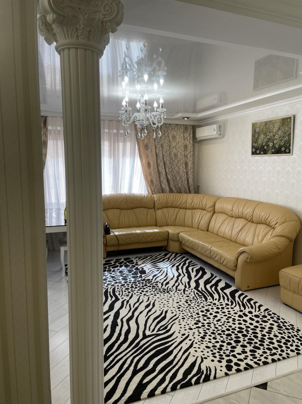 Квартира світла,не кутова,вікна квартири виходять на схід дуже тепла,повністю обставлена,є необхідні меблі- шафа,2 спальний розкладний диван в гарному стані,не продавлений,чистий,вбудовані кухонні меблі,стіл,стільці) та техніка (холодільник,пральна машина кондиціонер )