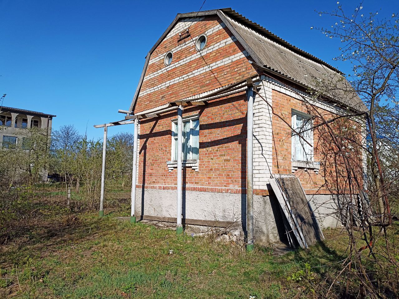 Продам дачний 2 поверховий будинок, СТ «Сонячний», проїзд 4-й Медичний буд№5. Вартість: 15000$ + витрати на переоформлення (нотаріус + податки) Площа: 50.8/40.4/5.2 м.кв. Земля: 6 соток. Кад.№: 6810100000:35:004:2271 Приватна власність, призначення 01.05: під індивідуальне садівництво. Цегляний будинок з добротним фундаментом, перекриття між поверхами плити. Дві кімнати – спальні (на першому і другому поверхах), кухня та коридор. На весь будинок є підвал, вхід з вулиці. На другий поверх сходи на вулиці. Комунікації – світло в будинку (лічильник), вода – криниця на вулиці, газ – проходить по вулиці. На ділянці невеликий фруктовий сад. Пропозиція від представника власника, покупець комісійних не сплачує. Показ по попередній домовленості.
