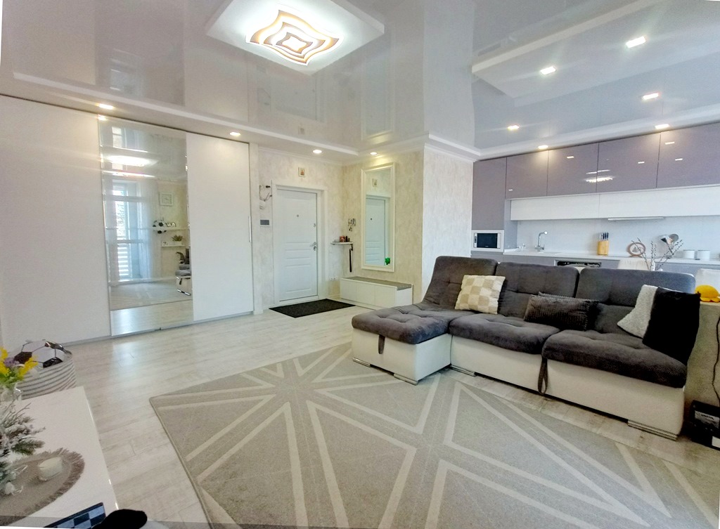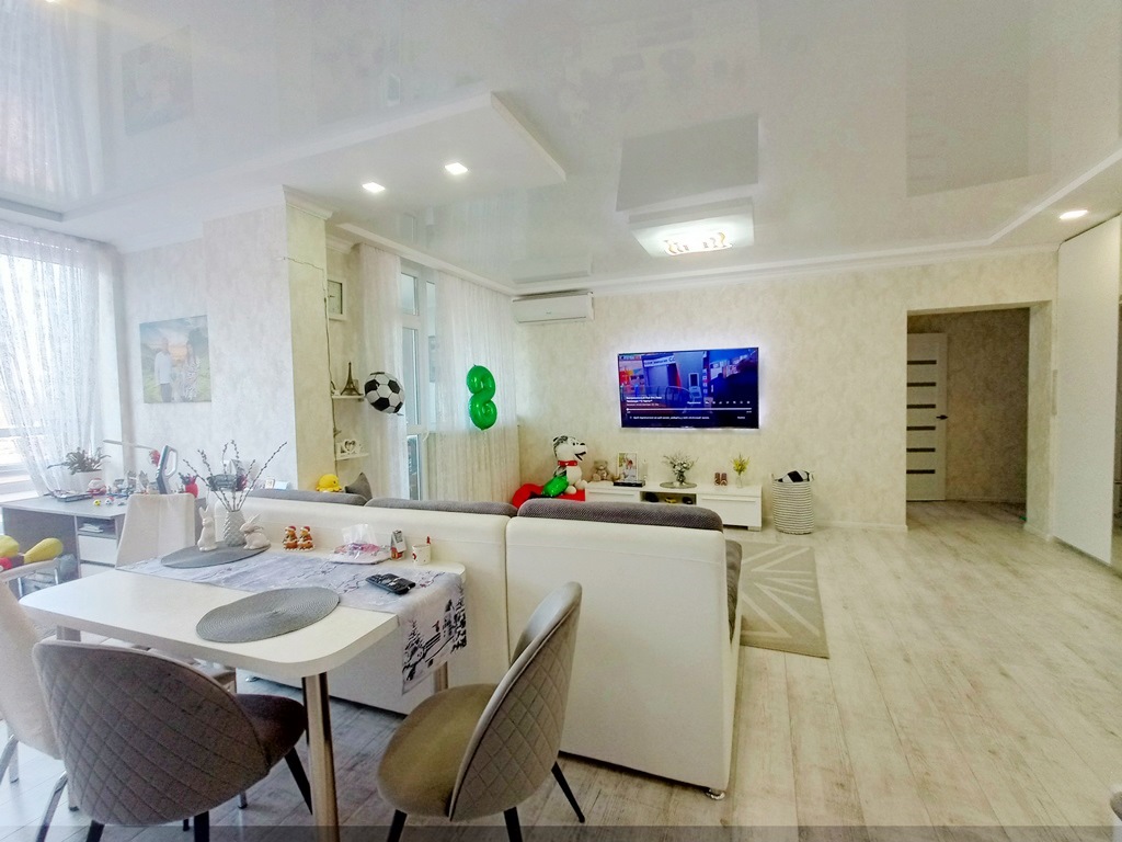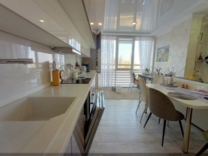 Вдале перепланування дозволило перетворити кухню на студію площею понад 30м2. Також є дві окремі спальні та велика засклена лоджія. Ремонт зроблений настільки продумано і якісно, що побачивши цю квартиру, ви відразу розумієте, наскільки комфортно в ній жити!