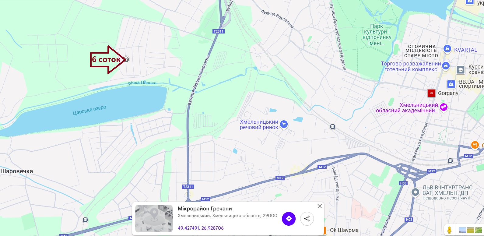 Продам ділянку 6 соток з комунікаціями м. Хмельницький р-н. Гречани дальні біля Західної Окружної проїзд 7-й Галицький СТ «Фруктовий». Дорога до ділянки майже вся асфальтована (1 км. до Об’їзної по…