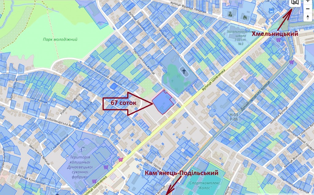 Продам земельну ділянку, Дунаївці, вул.Партизанська 30 та 30/1. Площа: 67 соток (80Х81,6м) Вартість: 200000$ + витрати на переоформлення. Кадастрові №№: 6821810100:01:133:0180 та 6821810100:01:133:0179 Призначення: 02.03 Для будівництва та обслуговування багатоквартирного житлового будинку. Приватна власність. Самий центр міста!. Складається з двох ділянок поруч площами 62,27 та 4,68 соток. На ділянках знаходяться приміщення різного плану (гаражі, цехи, склади, трансформаторна...) загальною площею біля 1000кв.м. Продаються тільки разом. Оренда не розглядається. Всі комунікації міські. Оформлено на ТОВ. Планувалось під забудову багатоквартирних будинків. Пропозиція від представника власника.