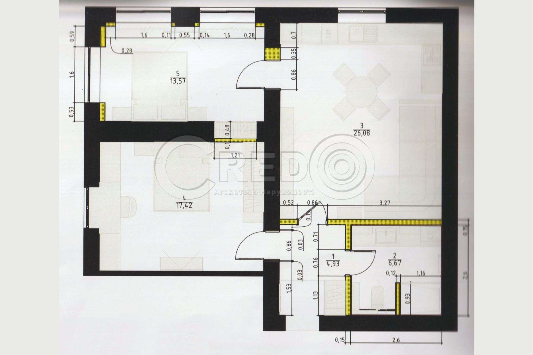 Особливості: - квартира перепланована - вікна "Віконда" - в одній з кімнат є бомбосховище - зроблений демонтаж підлоги та стін - квартира підготовлена під ремонт Дизайн-проєкт в подарунок