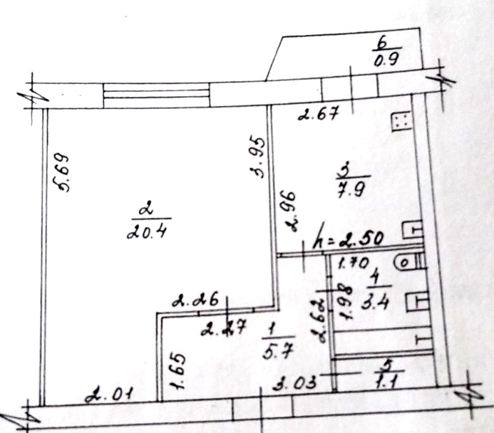 1 кімн., площа 24/12/5, поверх 3/9
