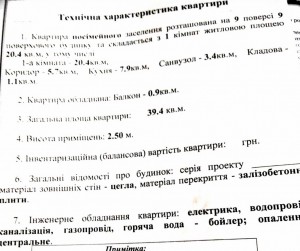 1 кімн., площа 39/20/8, поверх 9/9