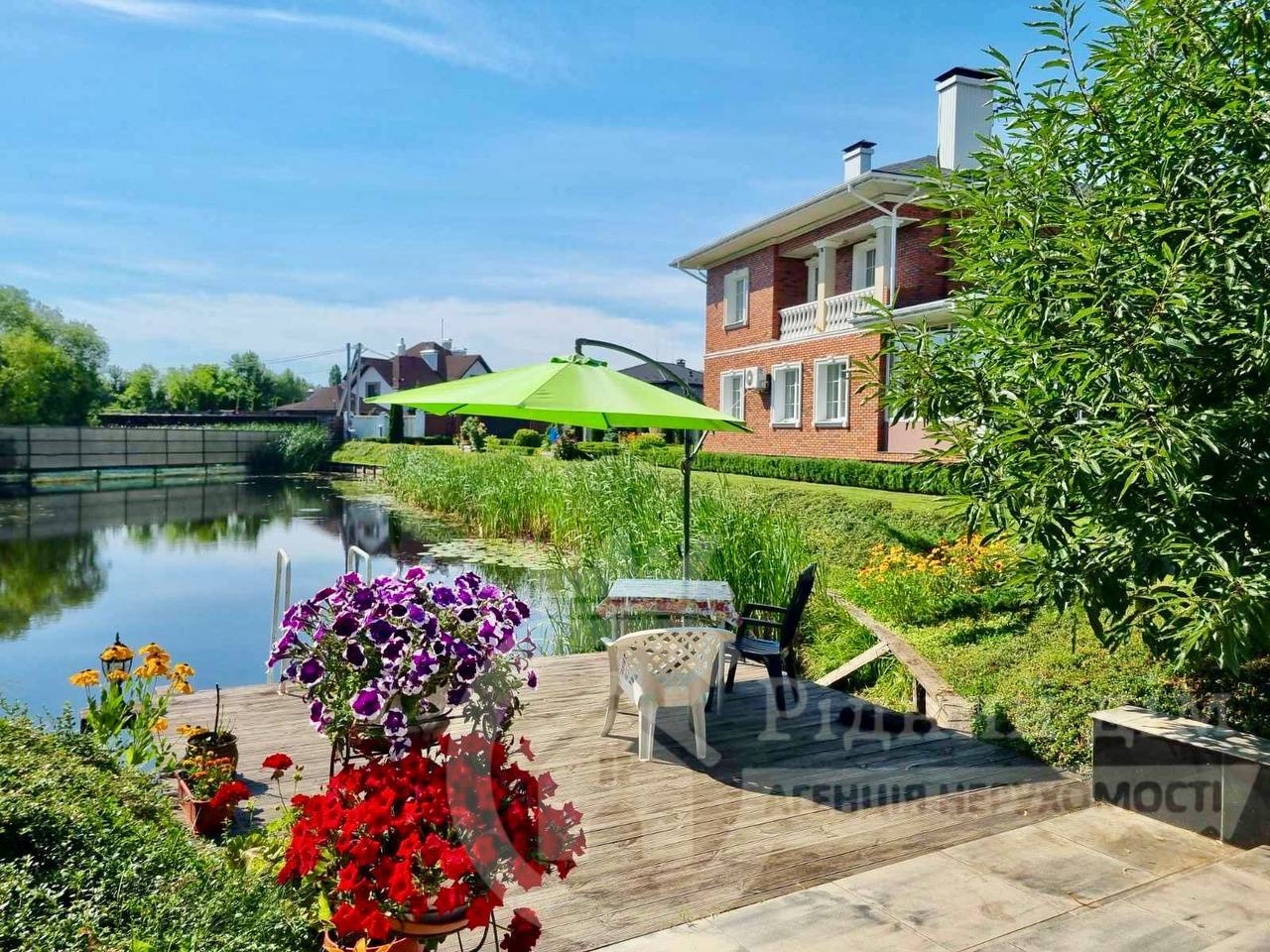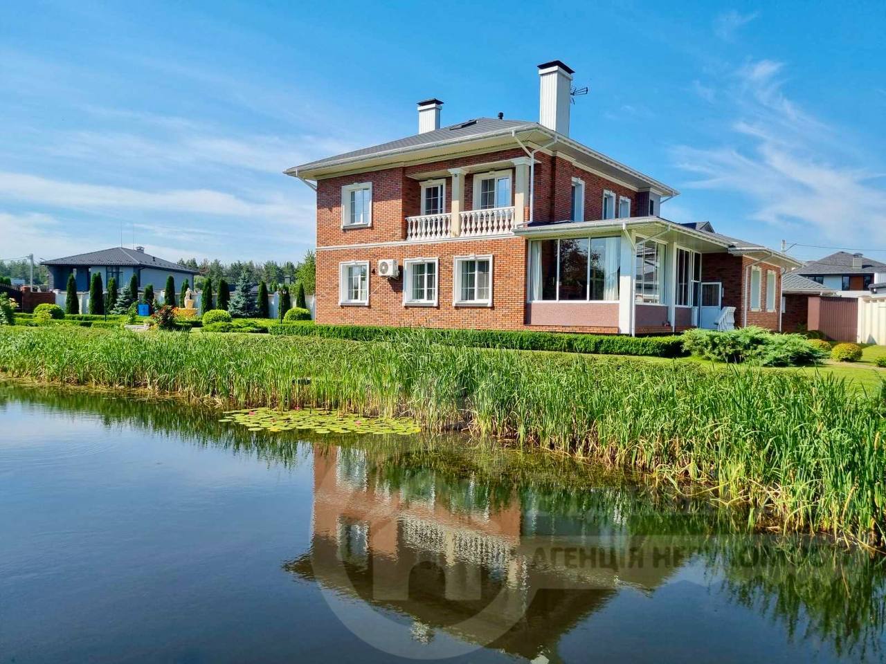 Площа: 274,77 м² 2 поверхи + мансардний рівень Земельна ділянка: 28,7 соток — ландшафтний дизайн, власне озеро, гостьовий будинок, сад, гараж