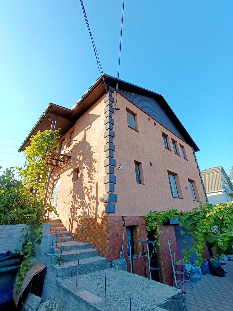 Продам 2 поверховий Будинок з новим сучасним ремонтом і повністю автономним по електриці. S=163.1 м.кв. на 6.49 сотках р-н. Піденно-Західний СТ «Кооператор» Черешневий 4-й проїзд б. 15 Давно обжитий район, кожні 15 хв ходять, від Катіонівського круга до самого будинка 2.8 км – це до 7 хв. на авто. Дорога асфальт – відсипана. Є прописка. Сучасний Будинок складається з 2-х поверхів і цоколя (гараж), площа 163.1/58.8/12.1 м.кв. + прибудова (веранда закритого типу +- 20 м2). Кухню можна збільшити за рахунок однієї кімнати. На даху будинка встановлені сонячні панелі на 10 к.Вт, гібрідний інвертор на 20 к.Вт. і батарея ( максим. видачі батареї 15 к.Вт) – що робить будинок не тільки автономним по електриці, ще дає змогу заробити на подаваючи електрику в мережу +- 13000-14000 грн на місяці в сонячні дні. По комунікаціям: Вода своя – криниця (8 метрвів) і свердловина (40 метрів); Каналізація – септик 2х камерний 3 куба залізобетонний (моноліт) і 5 кубів бетоні кільця; Газ – в будинку; Електрика – 3 фази 30 к.Вт. (з легкістю можна одночасно заряджати 2 електрокара). Опалення: газове (двоконтурний котел) і електричне (електричний котел 17 к.Вт.) котли запрограмовані попрацювати по системі газ вдень, вночі електро, налаштування можна змінити, перший поверх теплі поли, 2-й поверх радіатори. На гарячу воду є ще бойлер 200 л.. Кондиціонери 2 шт. Наявність розетки для заряду електромобіля. Двоповерховий будинок в себе включає: 1-й поверх: 20.1 м2 – кімната вітальня, 12.3 м2 – спальня, 12.1 м2 – кухня (яку можна збільшити), 6.9 м2 санвузол з ванною, 10.8 м21 - вхідна група. 2-й поверх: дві спальні 16.1 і 10.3 м2 в одній спальні гардеробна, 3 м2 – санвузол з душовою кабіною, 15 м2 – коридор (зона відпочинку, спорт куток), і вихід на горище (складна дробина) Цоколь: 49 м2 – великий гараж на 2 авто (погріб під гаражем), 2.5 м2 – санвузол, і залишкова площа хоз. приміщення (обладнання і підключення сонячних панелей, батарея, інвертор, фільтрація води, котли, бойлер, … ). Тех. паспорт трохи відрізняється з реальним плануванням. Готовий жилий цегляний будинок (1-й поверх цегла, 2-й пеноблок) з зовнішнім утепленням (пінопласт 10 см.) і панельним перекриттям, дах балки утеплений мін. вата, покрівля – металочерепиця. Фундамент блочний з двох блоків по 40 см кожний, зроблена гідроізоляція. В будинку робився якісний ремонт, робився на совість, як для себе! Ремонт: підлога – керамічна плитка і ламінат, стіні – фарбовані, стеля – натяжна. Все як на Фото! Будинок повністю укомплектований для комфортного життя: вбудована кухня з технікою, холодильник, телевізори, котли, бойлер, відео нагляд, газовий барбекю, і багато чого іншого – все це залишається! Ділянка 6.49 соток під будівництво к.н. 6825089600:03:012:0999 , правильної прямокутної форми. Молодий фруктовий садок, будиночок для садового інвентарю. На подвір’ї стає два авто, по периметру ділянки відео нагляд і паркан, вулиця повність заселена.