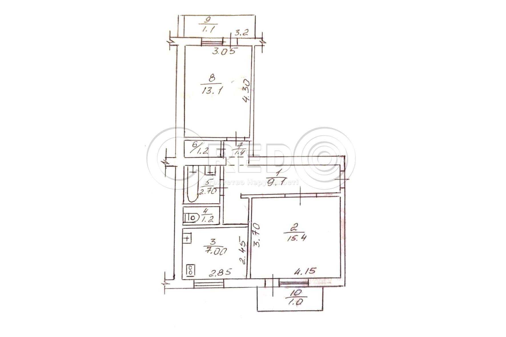 - кімнати роздільні 15,40 + 13,10 м.кв.
