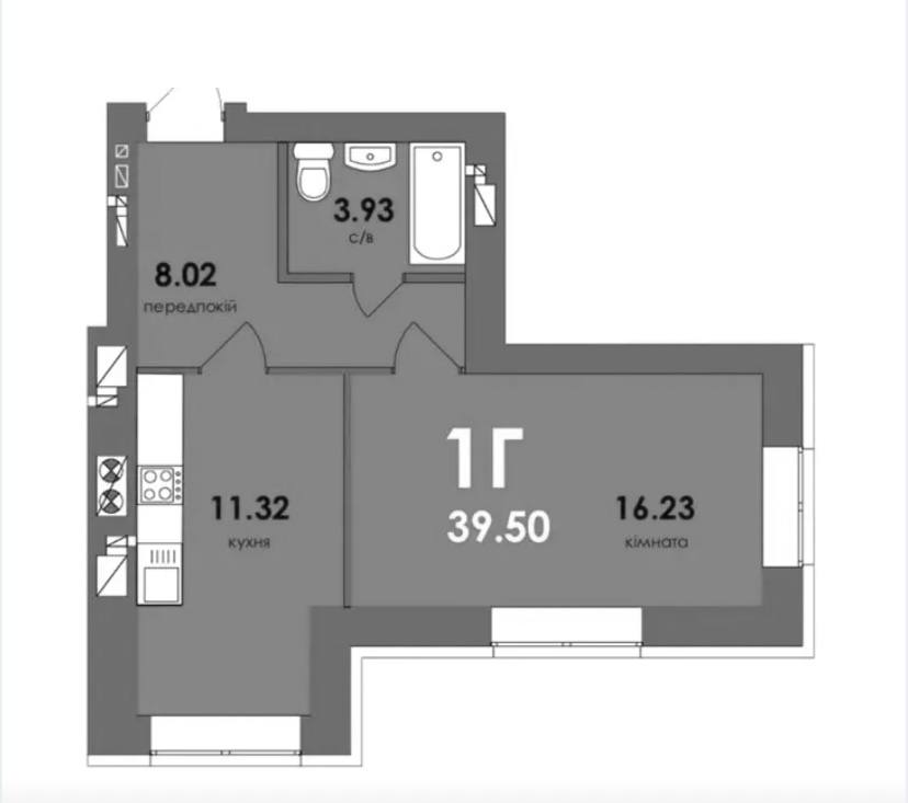 Загальна площа: 39.24 кв.м