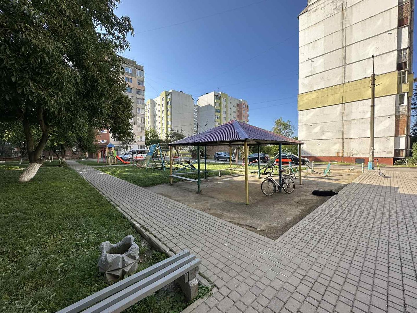 Є парковка біля будинку, дитячий майданчик.