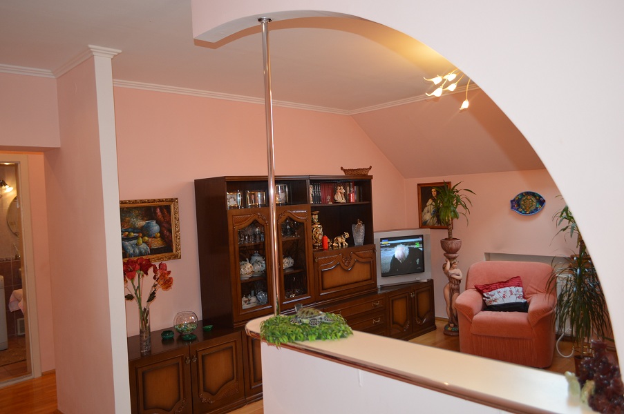 Продам квартиру мансардного типу в Ужгороді, вул. Гуци, мкрн. «Шахта», 3-кімн.кв., 6/6, заг.пл. 72 кв.м., сучасний якісний ремонт, авт. газ. опал., кухня + столова, дві окремі кімнати, робочий кабінет, балкон, лоджія, хороший паркет, дорогі меблі, чудовий вигляд на гори та ліс, продається з меблями.