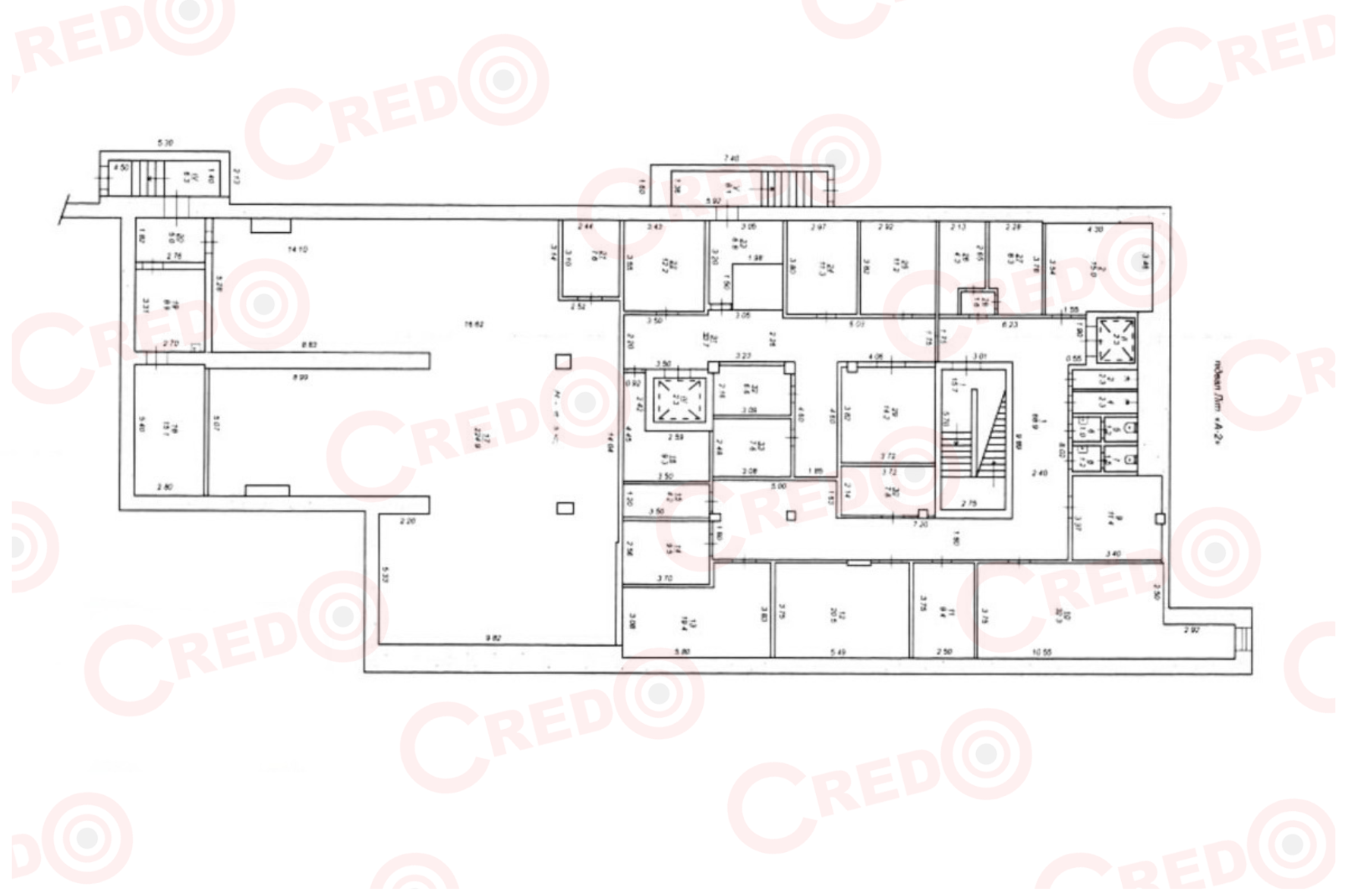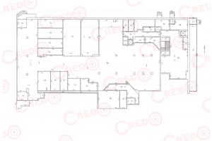 Общая площадь 2017,8кв.м., из них 1386,6кв.м. занимает 1-й этаж и 631,2кв.м. подвальное помещение.