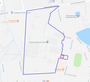 У центрі міста на території ПрАТ «Красилівського машинобудівного заводу». Будівля може ефективно використовуватися під їдальню, супермаркет, ресторан, бізнес-центр.