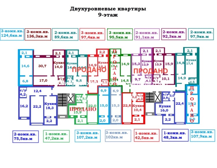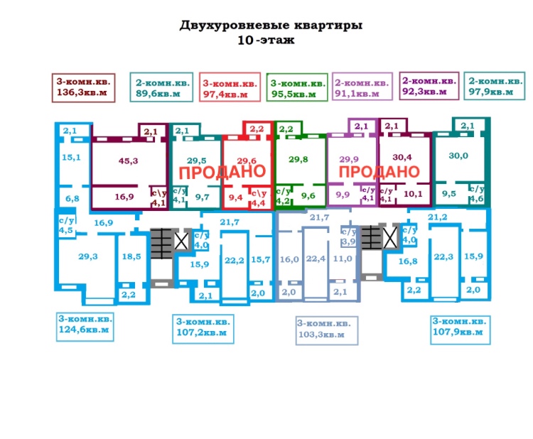 Двухуровневая 2-комн. квартира, общей площадью - 95,5 м.