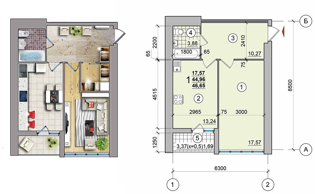 Загальна площа: 42 кв.м