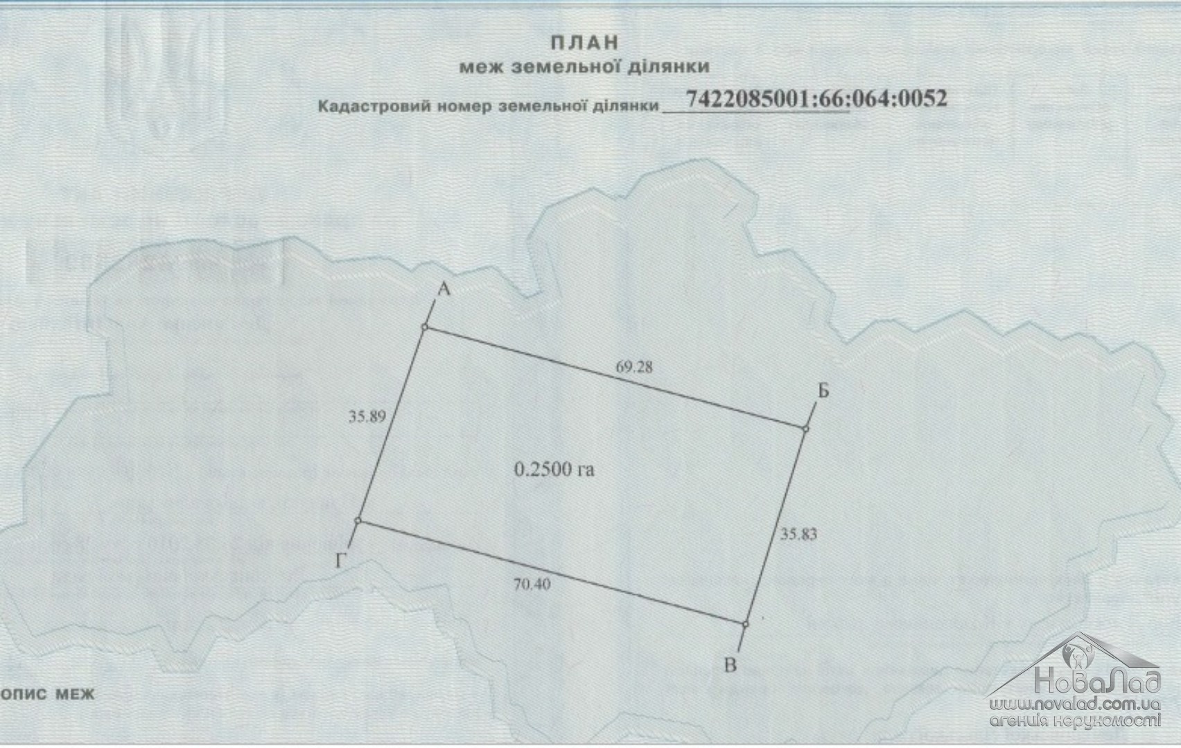 Площа ділянки: 25 сот