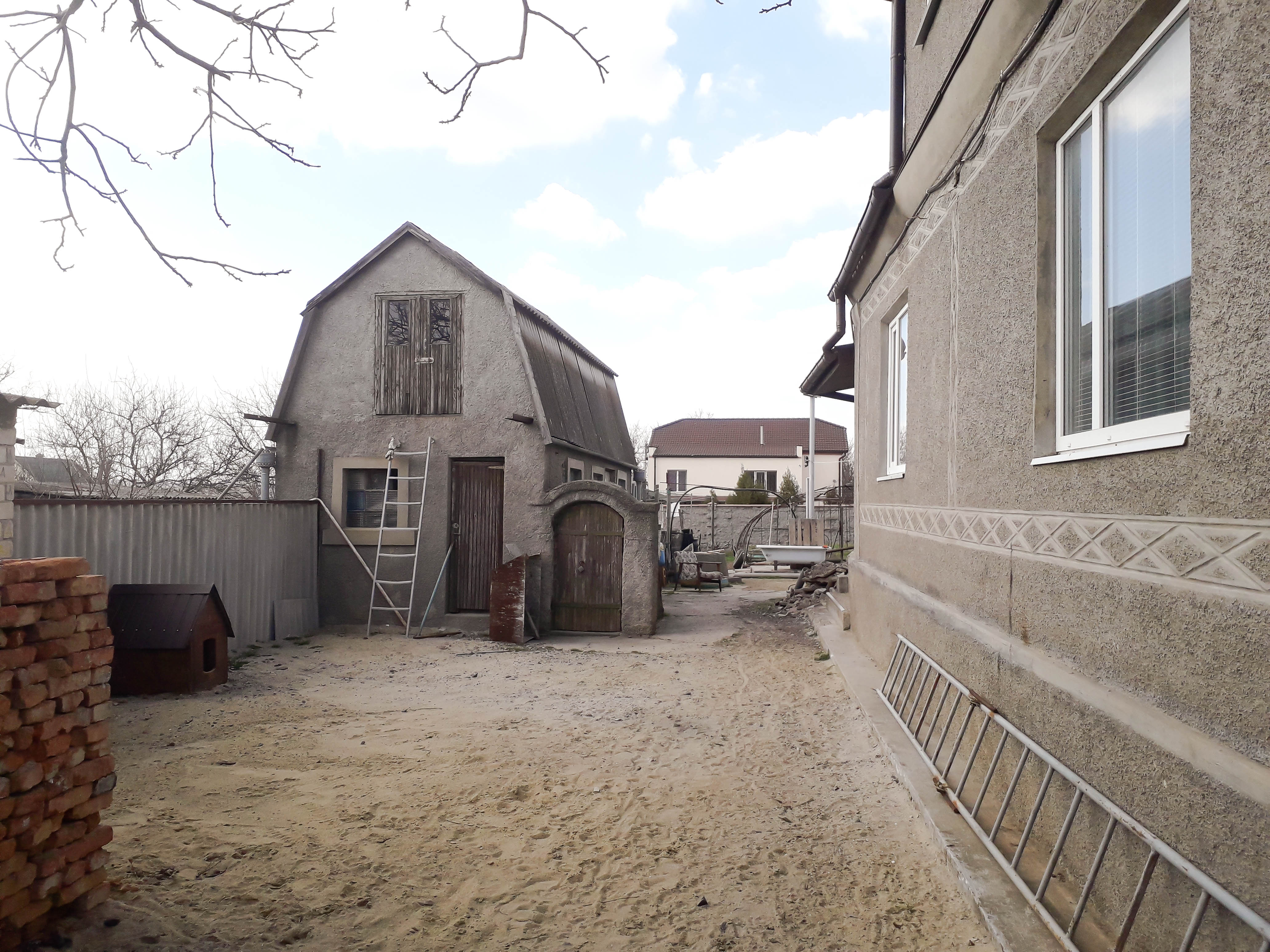 Просторный двор с заездом для машины, отдельно стоящий гараж, летняя кухня, летний душ и туалет на участке. Сам участок правильной ровной формы. Улица асфальтирована. Приличные соседи.
