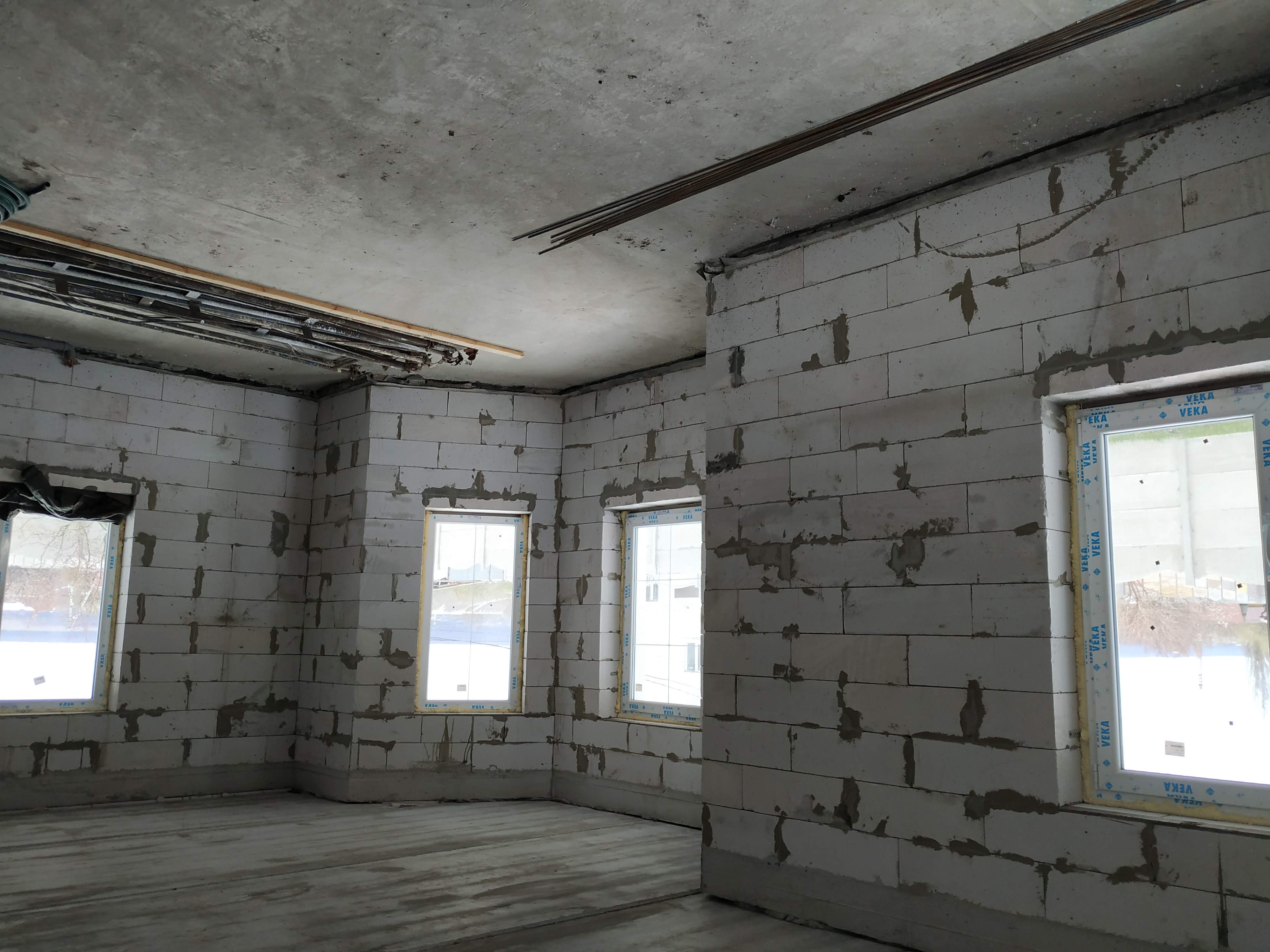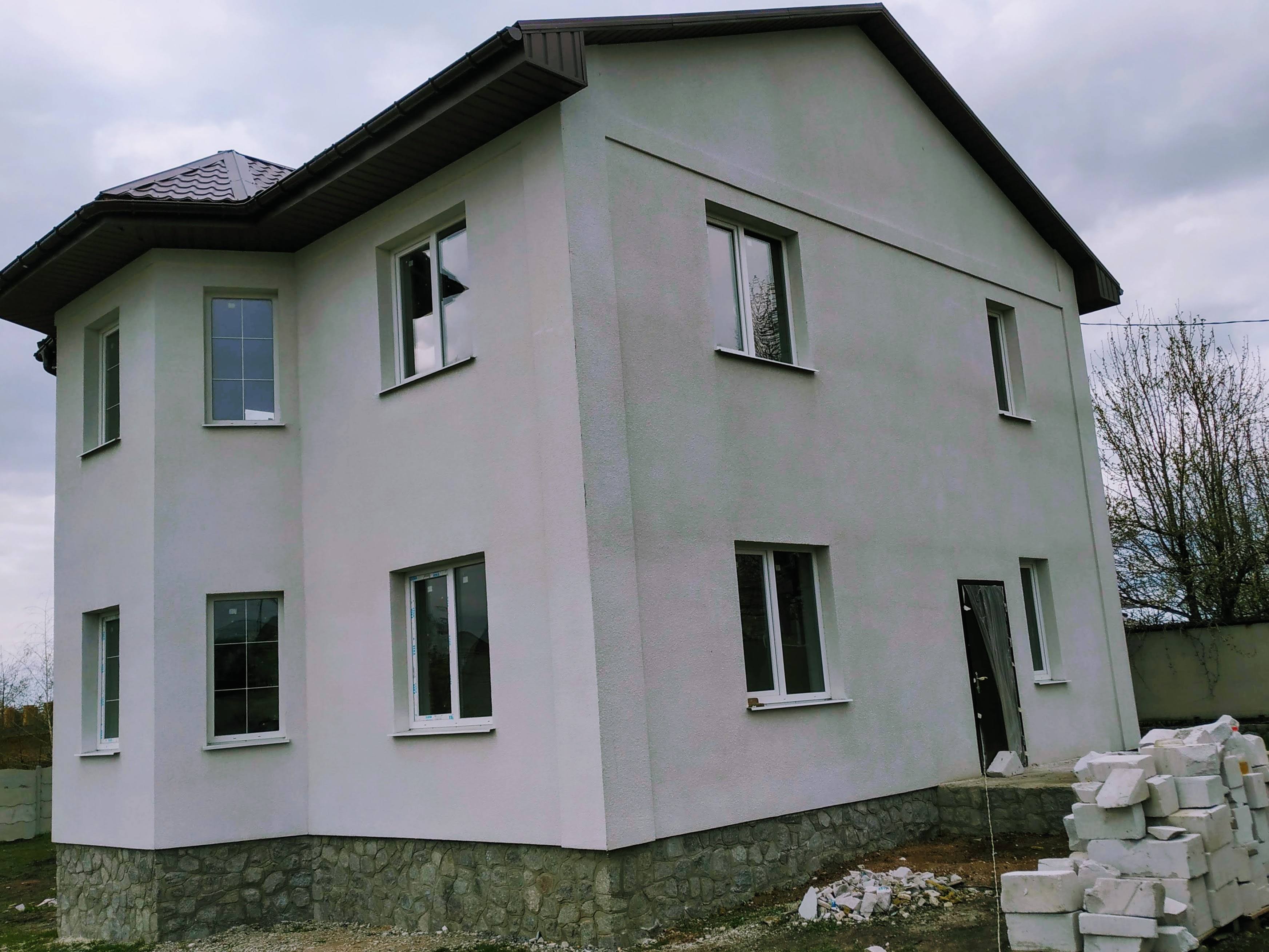 Состояние дома: под отделку с учетом ваших требований и безупречного вкуса. Конструкция здания стоит на армированном железобетонном ленточном фундаменте глубиной 1,30 м. Цоколь выполнен из силикатного кирпича и облицован бутовым камнем в замковом стиле. Стены дома из армированного газобетонного блока 375 мм UDK. Фасад утеплен минеральной ватой 50 мм и покрыт декоративной штукатуркой. За устойчивость и долговечность здания также отвечают два армопояса, которые выполнены на первом и втором этажах дома. Железобетонные перекрытия между этажами. Установлена металлическая лестница на второй этаж. Высота потолков – 3,0 м. Крыша изготовлена из высококачественной финской металлочерепицы RUUKKI. Все окна из передового профиля VEKA 70 мм с дорогой фурнитурой и трехкамерным энергосберегающим стеклопакетом. Входная дверь: металлическая двойная с утеплением, окрашена антикоррозионной эмалью.