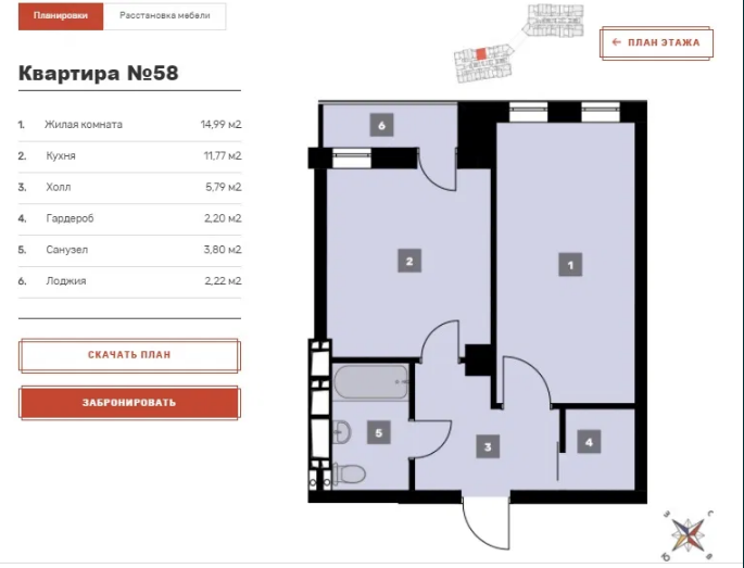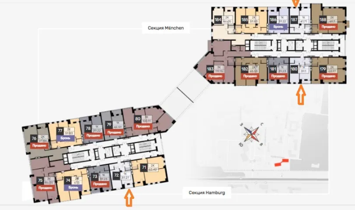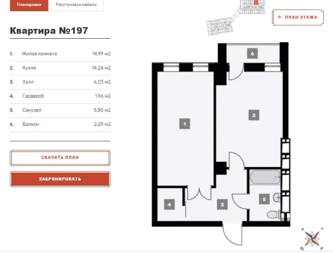 Так же есть 1к кв 42м2 с кухней 14м2. В данном комплексе можем предложить 2,3,4 комнатные квартиры. Мы работаем без комиссии.