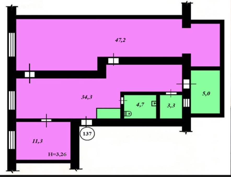 • общая площадь 102 м2, фактически используемая 110 м2; • цена 1000 USD/м2; • 1-й высокий этаж из 5; • бонус - 6 м2 подсобное помещение в подъезде;
