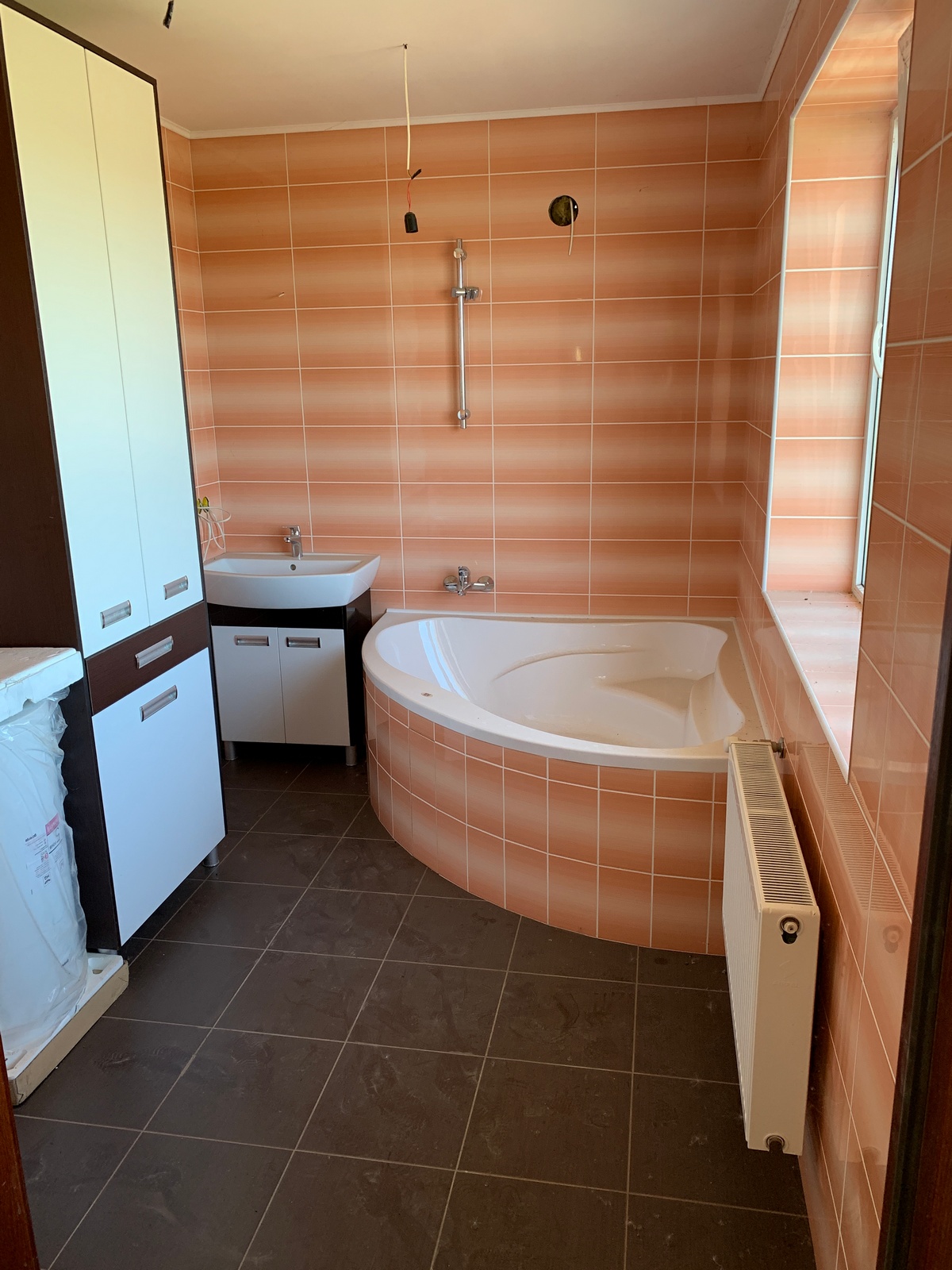 Окна металлопластиковые. Отопление автономное электрическое (15 кВт, один контур). Теплый пол в кухне-столовой. Горячая вода от двух бойлеров. Электричество 3 фазы, 25 кВт. Проводка медная. Вся разводка электрики выполнена. Вводы под кондиционеры. Вода централизованная, счетчик на воду. Канализация дренажный септик, глубина 6 м. Трубы воды - пластик, канализация - пластик.