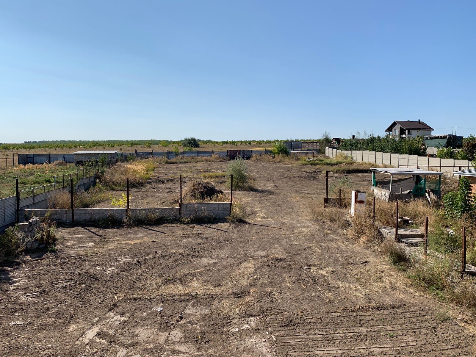 Участок приватизирован, два кадастровых номера (20+20 соток). Ширина участка по фасаду 38 м, длина 104 м. По периметру участка еврозабор, навес (каркас) над парковкой на две машины. Въезд во двор через ворота, улица асфальтирована. Школа, детский сад, больница, рынок, остановка транспорта (маршрут 109 идет до Вокзала), аэропорт, зона отдыха у реки Днепр в пешей доступности.