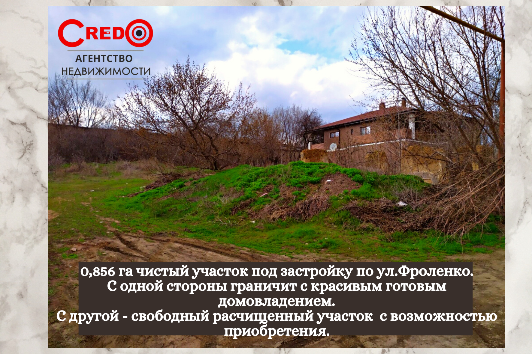 0,856 га чистый участок под застройку по ул.Фроленко.