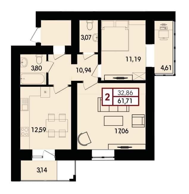 Загальна площа: 65 кв.м