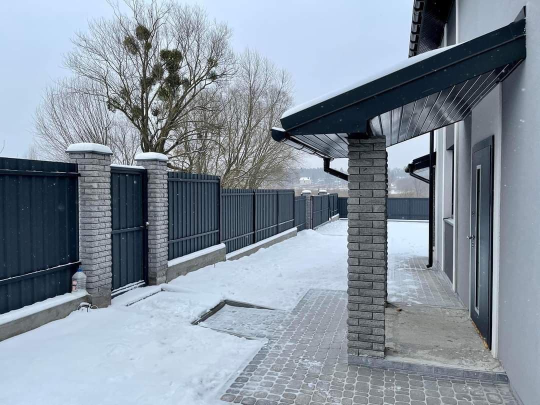 Будівництво: стіни - газоблок 300 утеплення фасаду - 100 оздоблення фасаду - декоративна штукатурка та камінь, перекриття - з/б дах - металочерепиця. Внутрішне наповнення: сходи - бетонні сход вікна - металопластикові ламіновані вхідні двері - склопакет Коммунікації: електрика - введено в будинок 3ф 16Квт вода - скважина 35м каналізація - септик тепла підлога - 1 эт, 2 эт (с/в) Планування: 1 поверх: коридор, с/в, кімната, кухня-студія с панорамними вікнами та виходом на простору терасу з видом на ліс і парк. 2 поверх: 3 кімнати, с/в Територія: паркан - стовбці з облицювальної цегли в'їздна зона - відкатні ворота