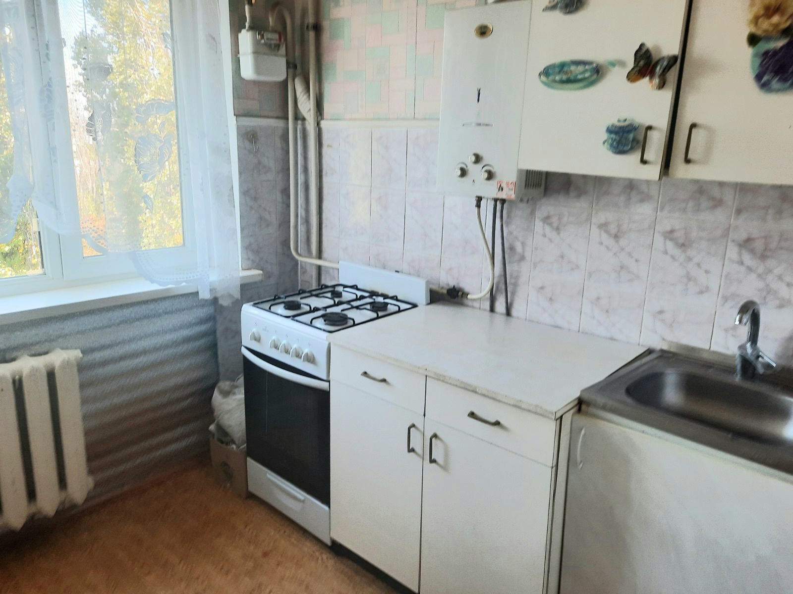 Квартира находится между Южной и Парковой (возле парка Юность), в середине дома, на 2 стороны. Окна МП, балкон застеклён МП, увеличен, удлинён, швы с улицы в панелях гидроизолированны, крыша не течет был произведен кап ремонт. Комнаты смежные -можно разделить, санузел смежный. Подогрев воды - колонка, сантехника поменяна, батареи прочищены. Квартира светлая, тёплая. Счётчики на всё, электрический счётчик - день / ночь. Общая площадь - 44 кв. м, жилая - 30 кв. м, кухня - 6 кв. м. Дом ОСМД. Магазины, супермаркеты, рынки, парк, школы, садики, остановки - всё в шаговой доступности. 28 000 у. е. Торг
