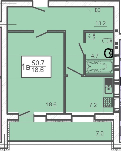Загальна площа: 50.7 кв.м