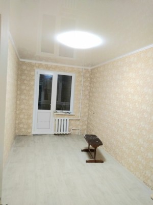 В комнатах подвесные потолки, МПО, стены выровнены, лоджия застеклена - металлопласт, балкон - хорошая столярка.