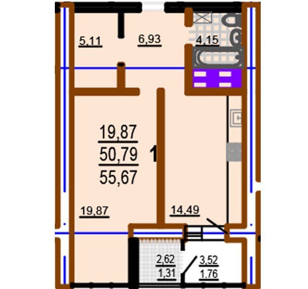 Загальна площа: 56 кв.м