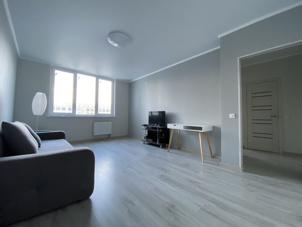 Новый дом постройки 2013года., Квартира очень светлая теплая. Сделан современный ремонт, мебель из качественных материалов, техника. Установлены все счетчики. Большая комната 22,4 квадратных метра. На кухня может стать кухней- студией, достаточно места для лаунж-зоны. Балкон не застеклен- для возможности организации под желание нового собственника - кабинет, продление кухни, лаунжзона для утреннего кофе и приятных вечерних закатов в бокалом вина или... ))