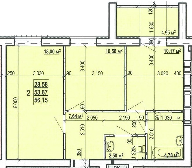 Загальна площа: 56.15 кв.м
