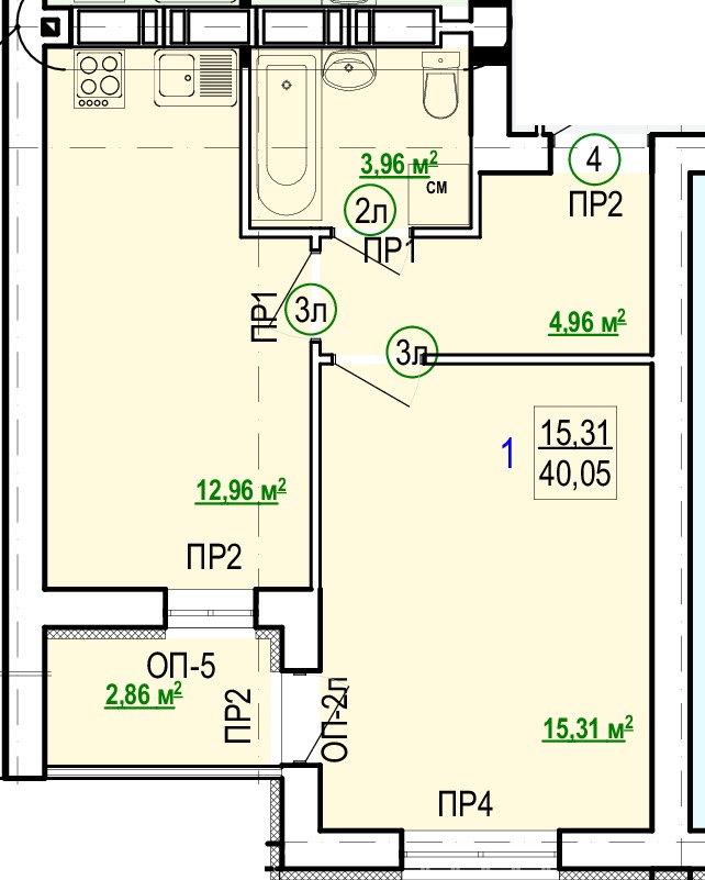 Загальна площа - 40 м²;