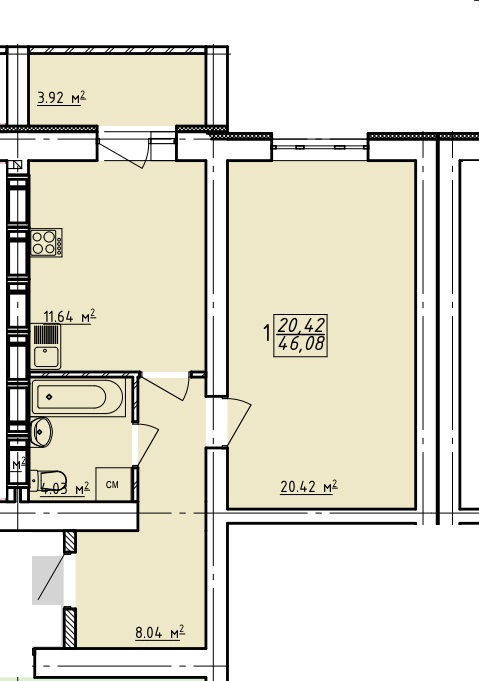 Загальна площа: 46 кв.м