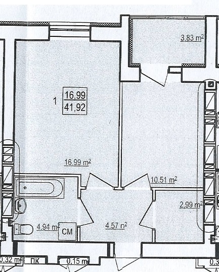 Загальна площа: 42 кв.м