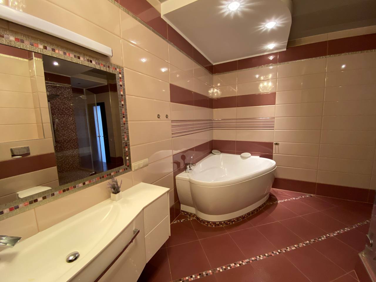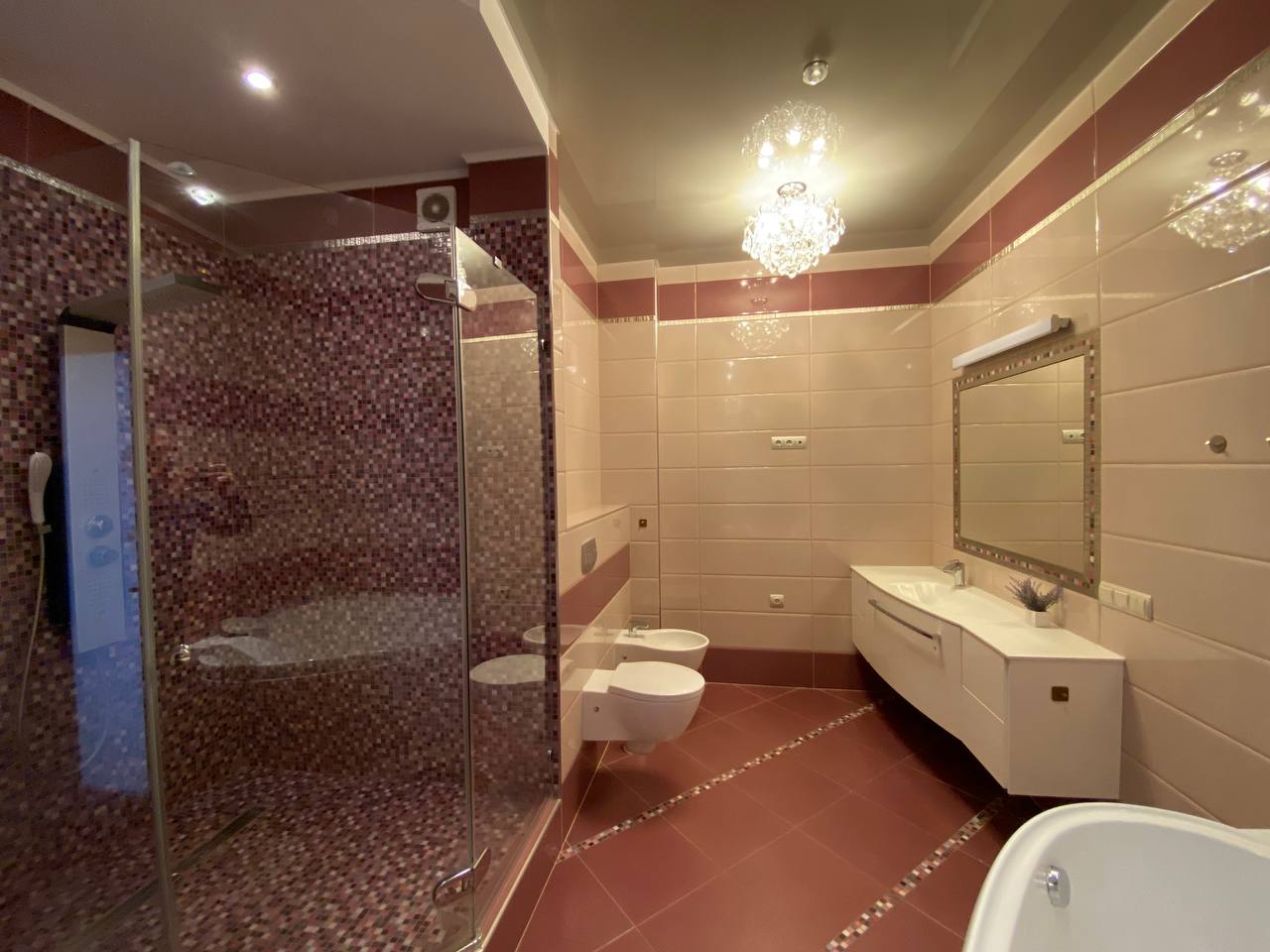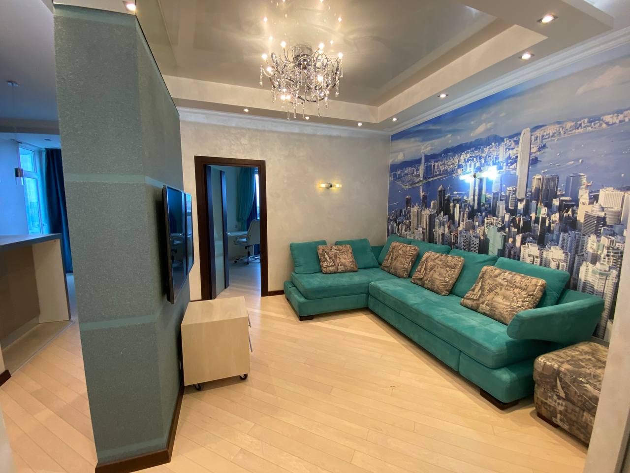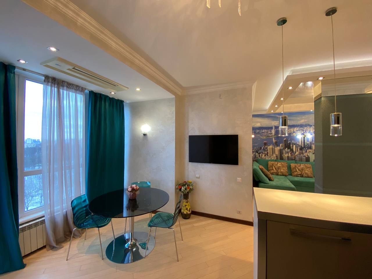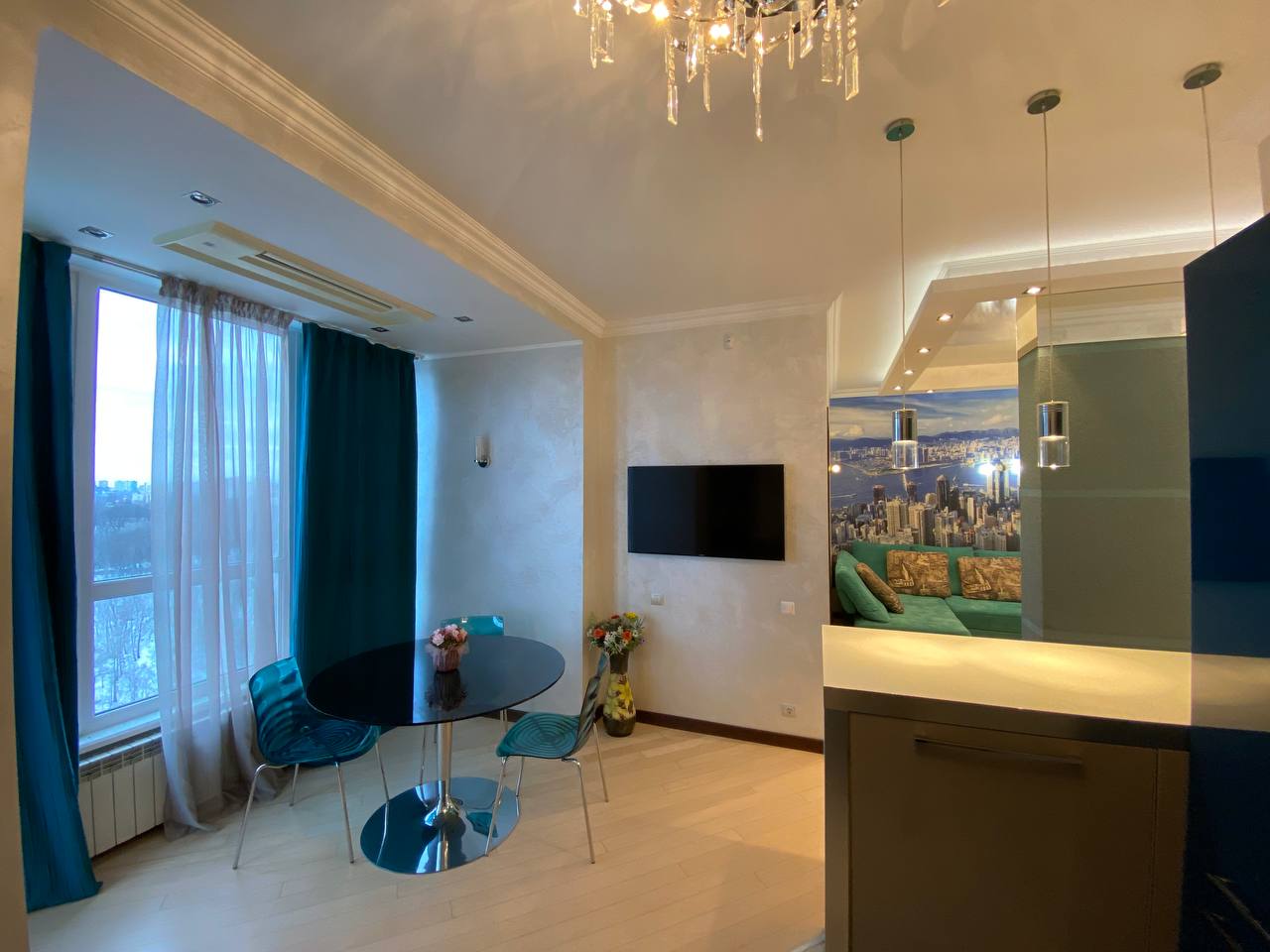 Отделка и технологии: * полы с натурального ясеня * подогрев пола в санузлах, прихожей и кухне * установлены бесшумные инверторные кондиционеры «Mitsubishi» Супер удобная система Аквасторож - при малейшем протекании перекрывается вода, соседей точно не затопите * стены - отделка штукатурка * качественная разводка электричества (есть все документы на проект) * итальянская сантехника, испанский кафель, установлены счетчики . Квартира полностью укомплектована мебелью и техникой: Встроенная кухня с бытовой техникой «Bosh Премиум», 3 плазмы «Samsung»