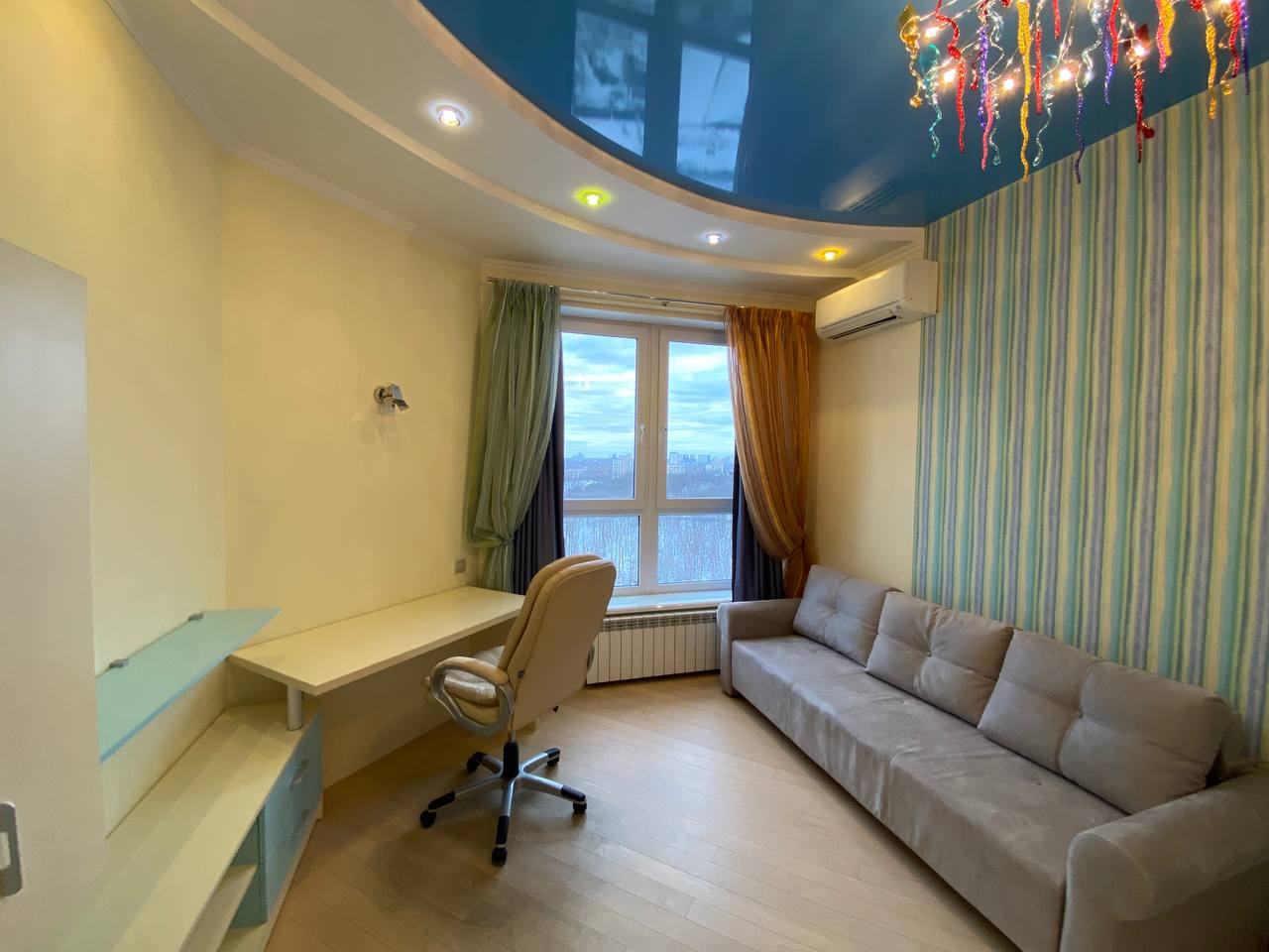 ВИДОВАЯ 2-Х КОМНАТНАЯ КВАРТИРА С ДИЗАЙНЕРСКИМ РЕМОНТОМ 108,3 кв.м. Ремонт квартиры сделан с учетом длительного проживания, отделка квартиры выполнена качественно. Видовой 25 этаж с красивым видом на город. Высота потолка 3,10 м. Удобная рациональная планировка совместно- раздельная. Общее состояние квартиры – евроремонт, над проектом работала команда дизайнеров. Характеристики квартиры: * Кухня - студио (объединяет рабочую зону с зоной отдыха) с шикарным видом на город. * Спальня с своим большим санузлом (ванна и душевая) * Детская, * Гостевой санузел с душевой * Вместительные гардеробные