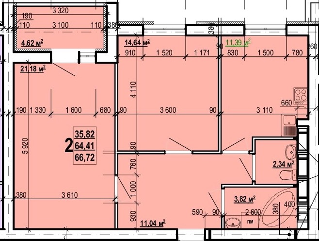 Загальна площа: 66.72 кв.м