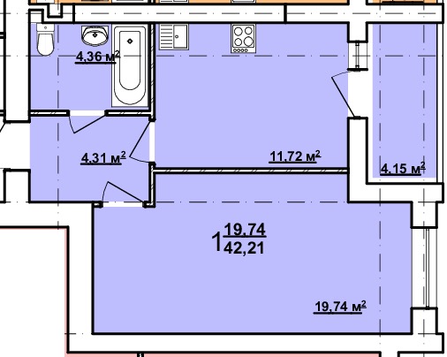 Загальна площа: 43 кв.м
