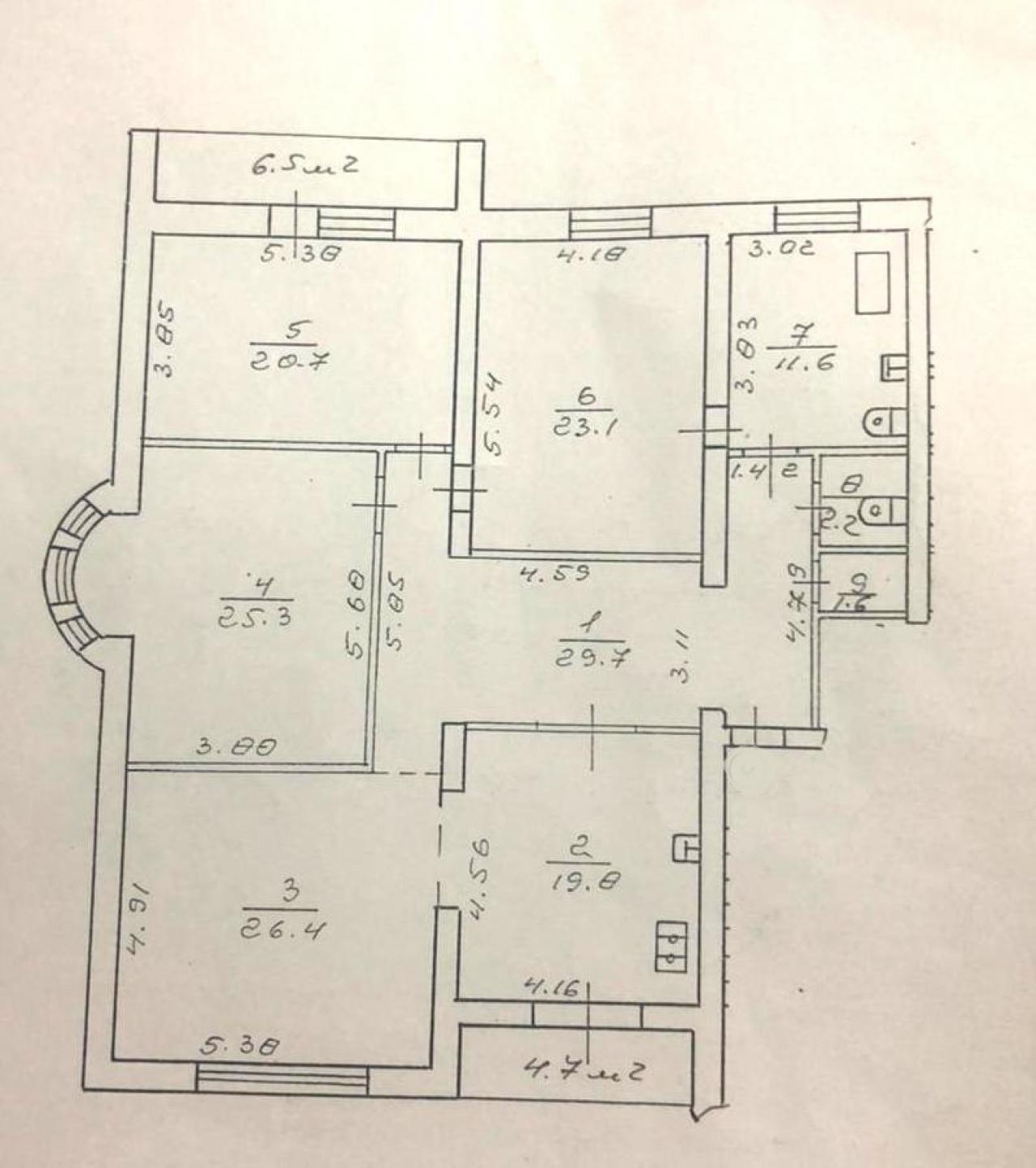 Загальна площа квартири 165,9 м2, житлова площа 96 м2, площа кухні 20 м2.