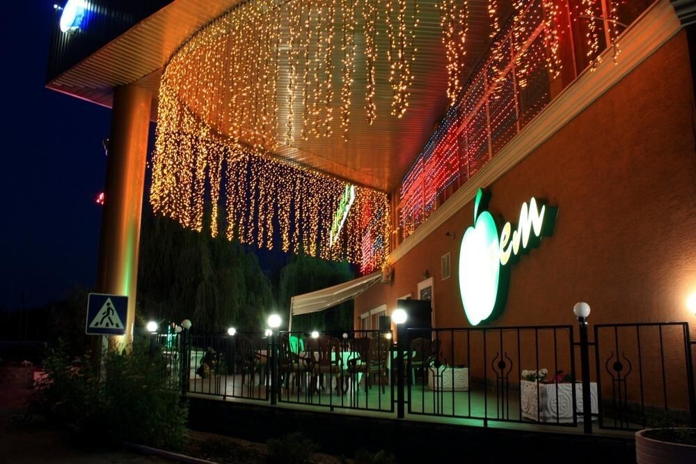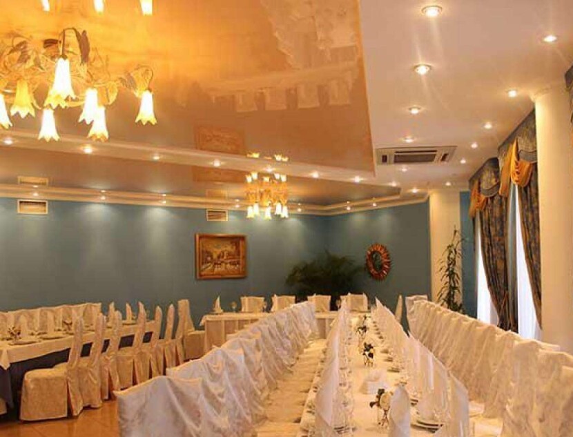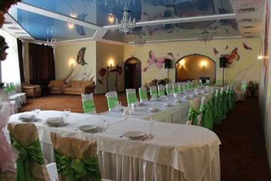 Ресторана в двух этажах. Первый этаж: кухня, барная стойка, летняя терраса, банкетный зал, санузлы. Второй этаж: 5 банкетных залов разной площади, санузлы.