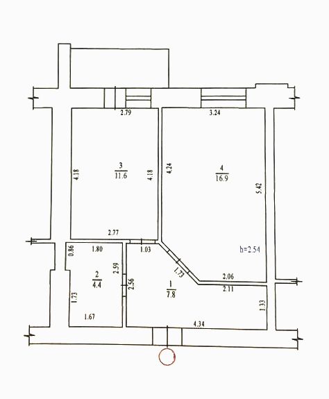 2 кімн., площа 44/30/5, поверх 4/5