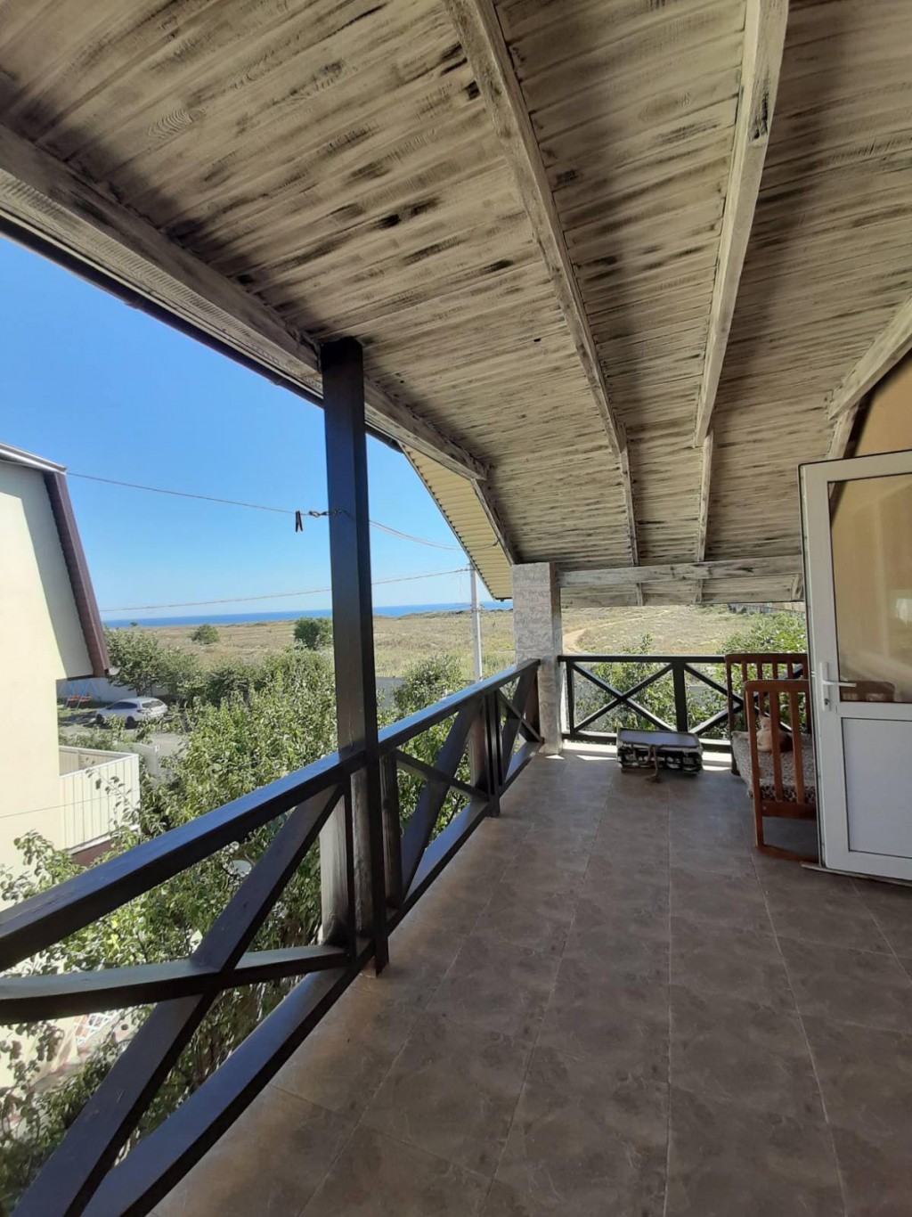С балкона 2-го этажа вид на море, морские рассветы, корабли и дельфины.