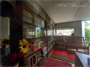 В мансарді облаштована бібліотека з плетеними лозовими меблями та затишний робочий кабінет