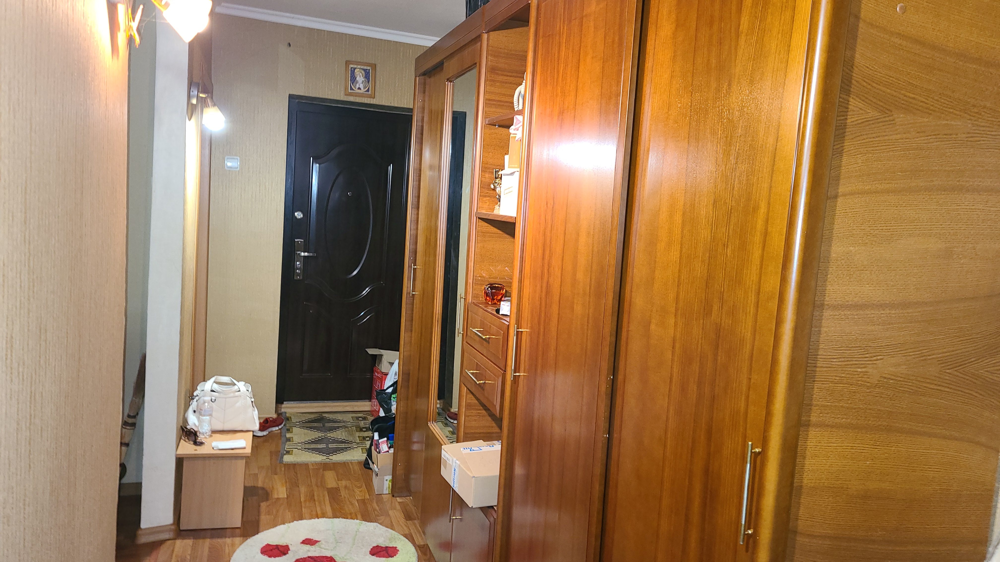 Фотографії в оголошені з речами попереднього орендаря. Речі орендар забере, квартира буде прибрана, вибачте за незручності.