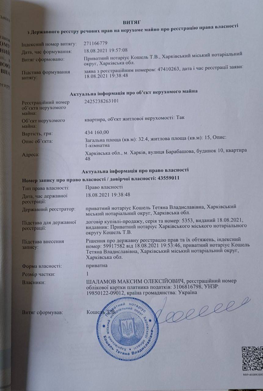 Терміново! Продам 1к ізольвану квартиру з документами в новобудові ЖК “Птичка” разташовану за адресою вул. Барабашова буд. 10. Дім собою представляє цегляну теплу новобудову від надійного забудовника ЖС-1. Квартира розташована на 4-му поверсі/ 9-ти поверхового будинку, загальна площа квартири 32,4 м2/ житлова площа 15м2. Стан квартири повністю від забудовника (без ремонту). На квартиру отримані документи право власності в 2021р. Все готове до продажу! Торгуємось!