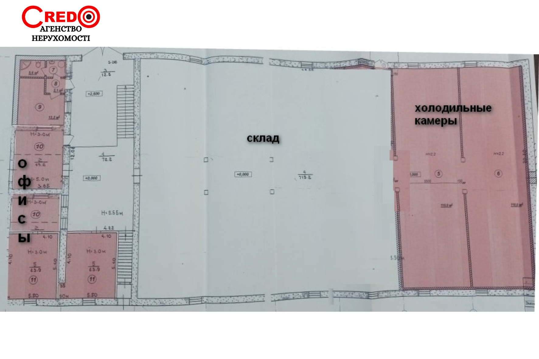 Пропонуємо в оренду склад з холодильними камерами та рампою, вул. Телевізійна. Загальна площа - 1110 кв. м, з них: - склад-800 кв. м. (Н= 5.50 м); - холодильні приміщення - 220м.кв. (t = 5C); - офіси та підсобні приміщення - 90м.кв. Земельна ділянка 19 соток. Приміщення в гарному стані, в оренду входить кара, є ваги. Комунікації: твердопаливний котел, кондиціонери, старлінк, центральне водопостачання та стоки; відеоспостереження. Склад розташований на території торговельних оптових складів. Виїзд на Дніпровську трасу. Оренда 70грн/кв.м. Тел. 067-696-16-51