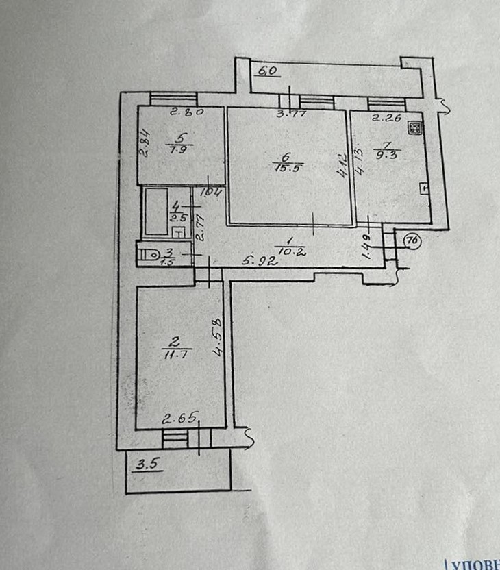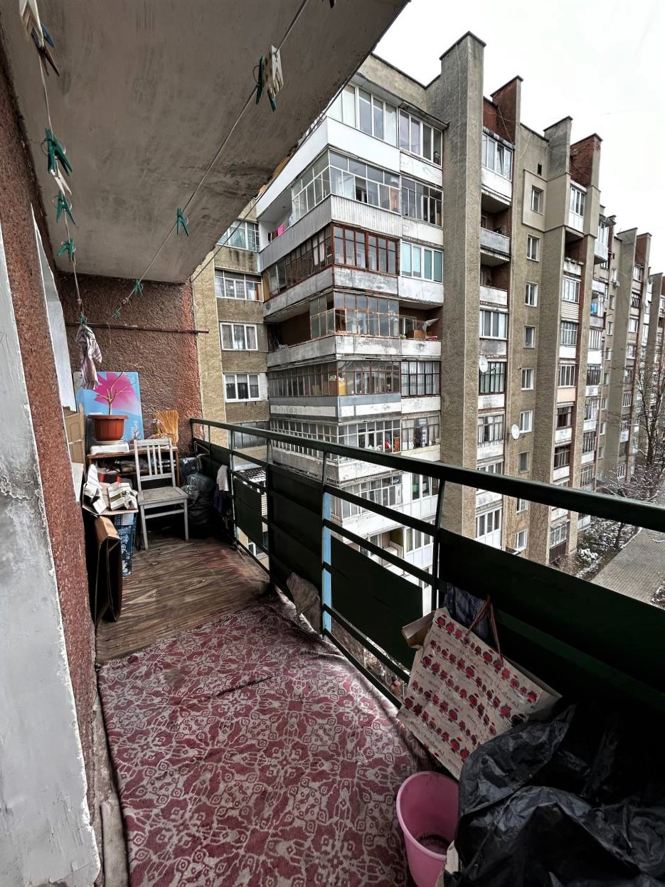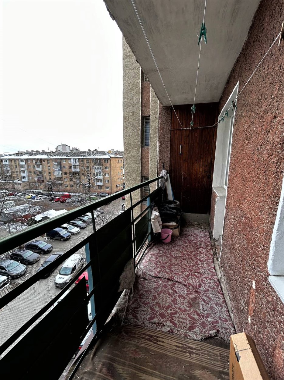 Є два балкони, один з яких засклений. Усі вікна, крім балкону, замінено на м/п.